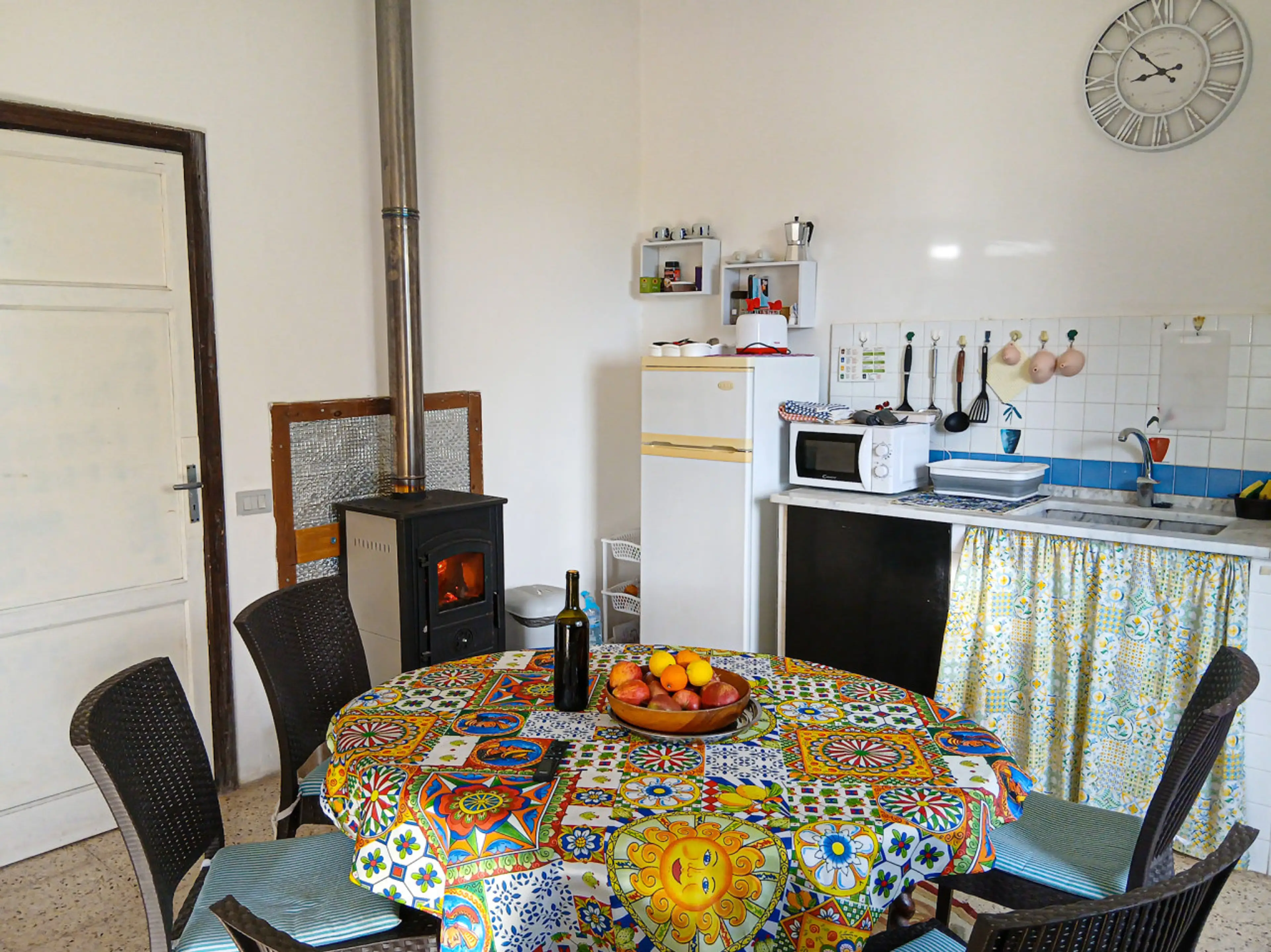 Bright airy living room , outside sitting area, large garden 5500 square metres, 2 big bedrooms, bathroom plus a fully equipped kitchen.